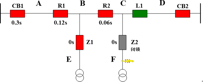 其中:分界斷路器Z1、Z2可配置一次重合閘功能,若為瞬時(shí)性故障,則重合閘成功,否則加速跳閘并閉鎖;